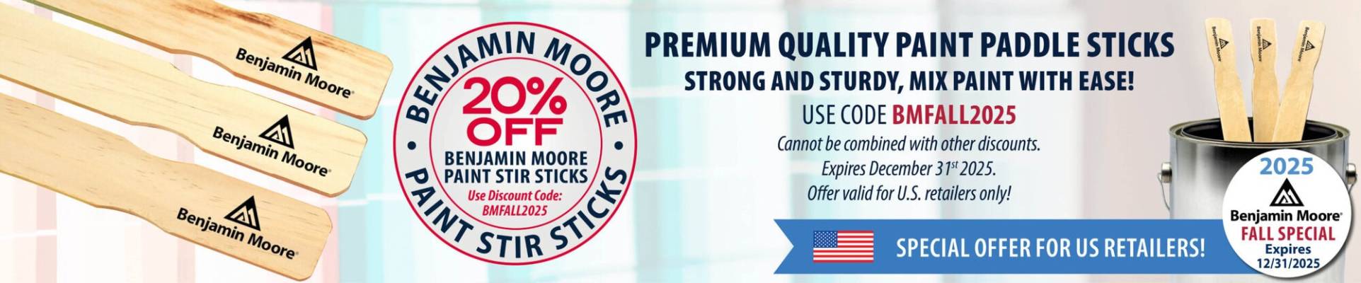 Check out our new Benjamin Moore Custom Color Paint Labels are now compatible with Seiko SLP 650 and the Dymo LabelWriter 300/400 printers. Now available, Benjamin Moore Paint Paddles. We also offer custom designs options with your store logo. Contact us for more information!